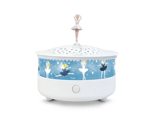 Denne charmerende natlampe spiller "Svanesøen" (spilletid er ca. 2,5 min) af Tchaikovsky, mens den projicerer beroligende stjerner på værelsets vægge og loft. Aktiver den lille fortælling, som bevæger figur og film, perfekt til at lulle barnet i søvn. For at spare batteri slukker natlampen automatisk efter 15 minutter. Funktionen “gråd-sensor” kan aktivere lampen igen ved støj. Inkluderer USB-kabel. Velegnet til børn fra 3 år og op.