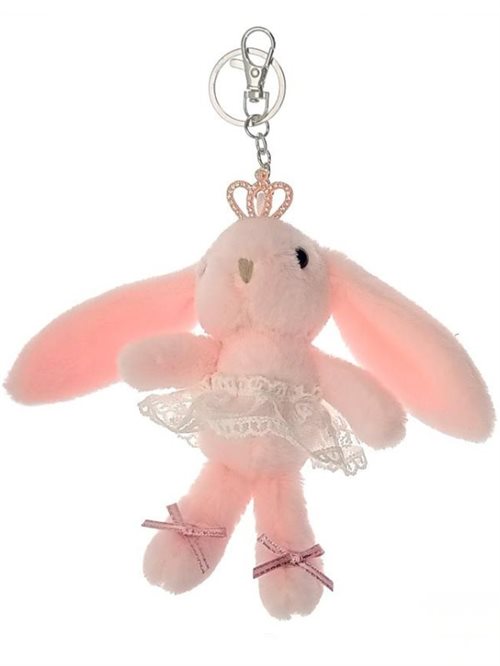 Fineste rosafarvet ballet kanin med blonde skørt, og diadem. 17 CM. Kan sættes fast på tasker og nøgler kan sættes på.