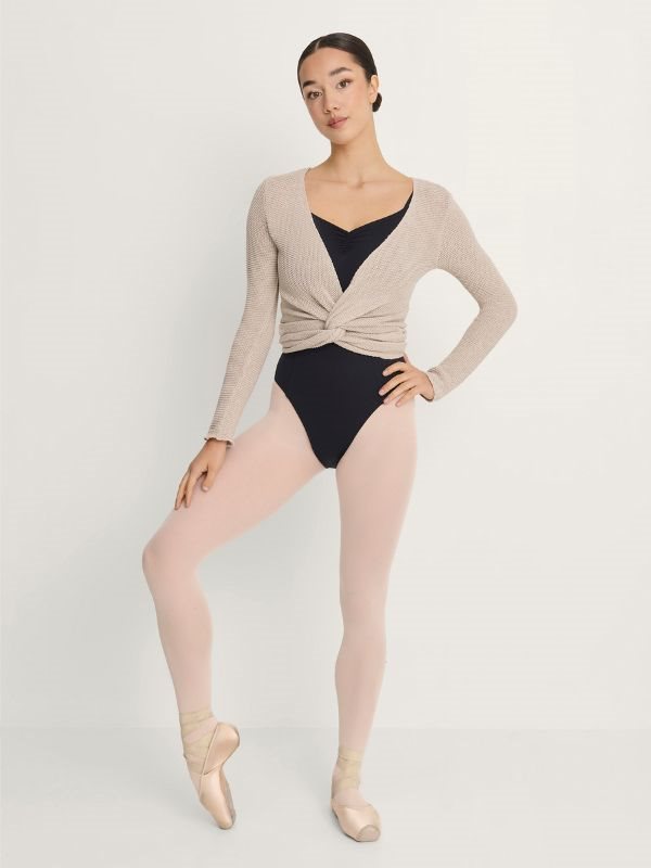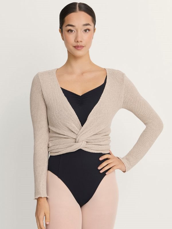 Lækker og blød slå-om cardigan i beige fra Intermezzo. Perfekt til din danseopvarmning.