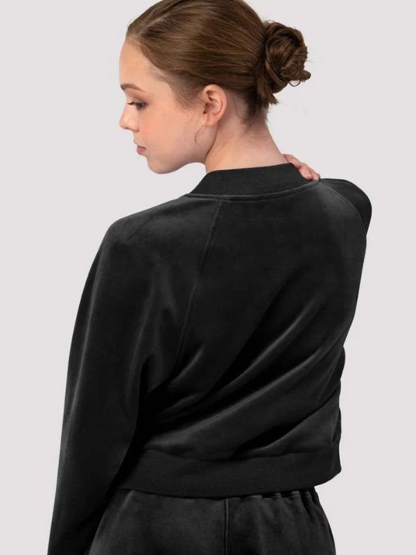 Bloch velour sweat jakke med raglanærmer, ribkant ved manchetter, hals og talje samt en elegant lynlåslukning foran. Jakken kan med fordel matches med Gloria sweatpants for et komplet og eksklusivt warm-up outfit.