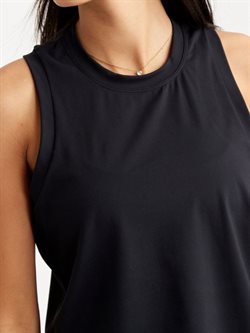 Drop of Mindfulness sort Relaxed tank top. Denne top er perfekt til dansetræning, yoga eller afslapning derhjemme, fremstillet af bløde, åndbare materialer. Stilfuld og funktionel, den understøtter din bevægelse og ro. Match med sorte bike shorts for et helt træningssæt. 88% Polyester, 12% spandex.