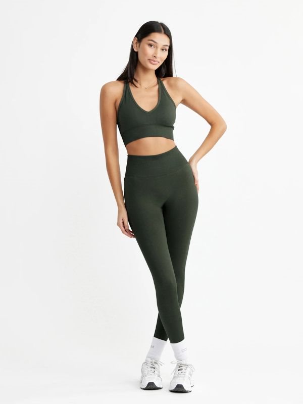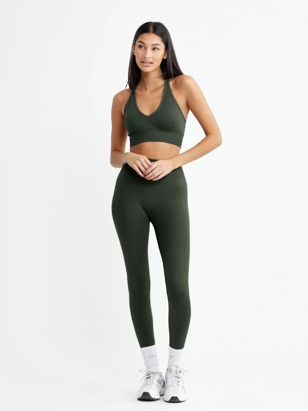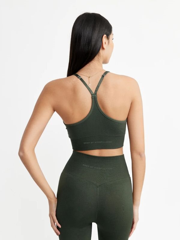 Drop of Mindfulness sports-bh med V-udskæring i mørkegrøn