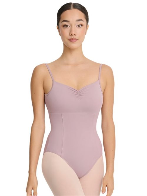 Klassisk duset lyselilla dragt med fine tynde stropper, elegant hjerteformet og rynket halsudskæring samt lav ryg. Udstyret med aftagelige bh-puder for ekstra komfort (voksenstørrelser) og frontsyninger, der former og fremhæver silhuetten. En tidløs, flatterende dragt med perfekt pasform og høj komfort til både træning og optræden.