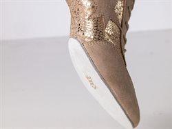 Kombinationen af blødt beige ruskind og skinnende platinfarvet printlæder giver modellen et moderne og stilfuldt look. Den delte sål sikrer maksimal bevægelsesfrihed, mens den 3,5 cm høje hæl med stødabsorbering giver stabilitet og behagelig affjedring. Ariana kombinerer sporty funktionalitet med elegant design.