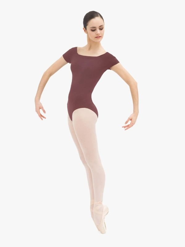 Terracottafarvet klassisk enkel dansedragt med korte ærmer fra Repetto.
