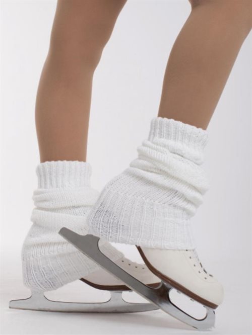 Intermezzo hvide benvarmere til skøjteløb. Det bløde og strækbare materiale sikrer en behagelig pasform, og gør benvarmerne til et uundværligt tilbehør for enhver skøjteløber eller danser, der ønsker at løfte sit udtryk.