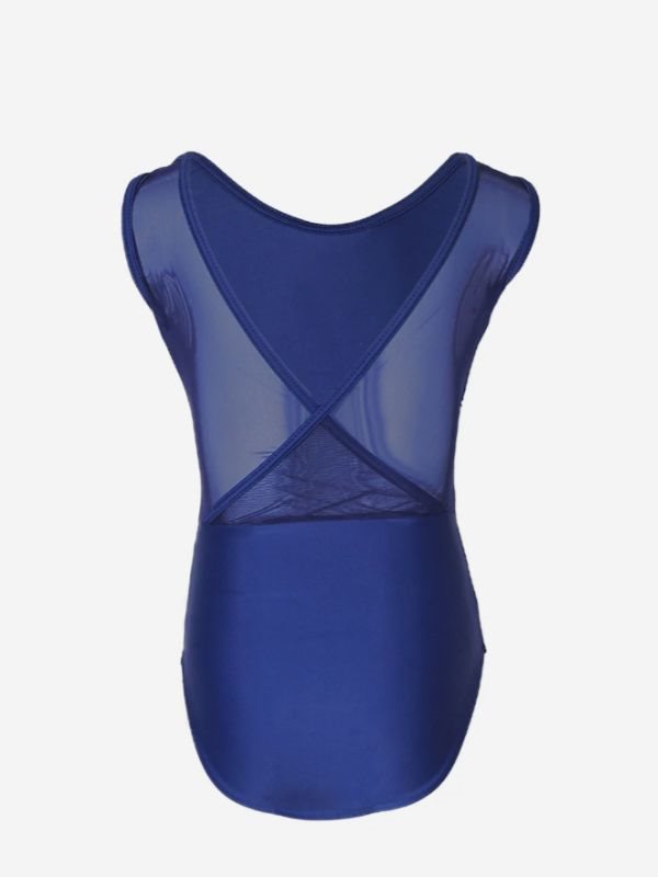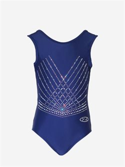 Navy ærmløs gymnastikdragt med mesh og sten piger fra The Zone i kombination af stil og funktionalitet. Fremstillet af det innovative Econyl®-stof. Gymnastikdragten er den dekoreret med funklende rhinsten, der vil få dig til at skinne under enhver optræden.