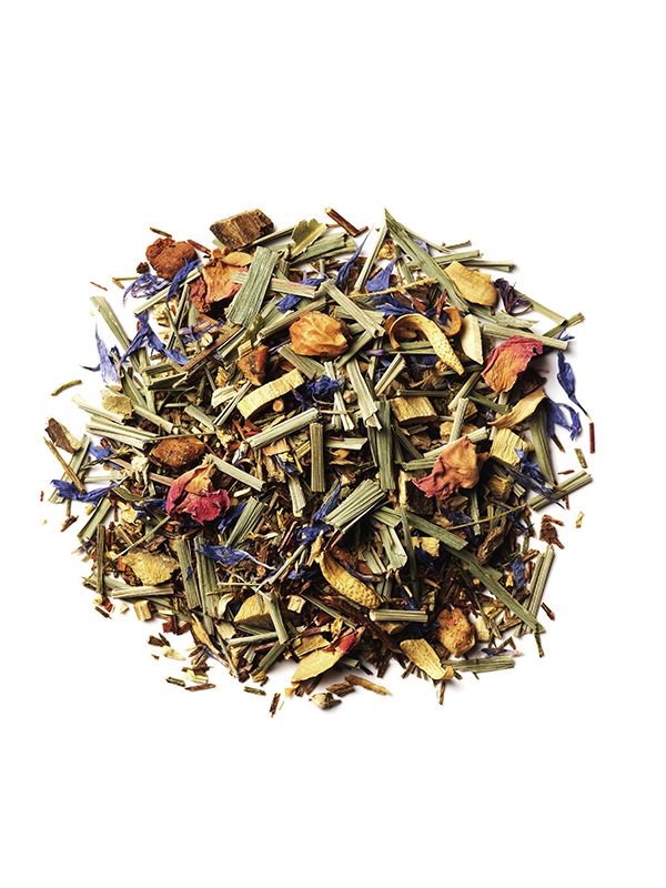 Indeholder: Honeybush, lakridsrod*, citrongræs, grøn rooibos, æble, aroma, rød rooibos, appelsin, hyldeblomst, rosenknopper, jordbær, kiwi, kornblomst, lindeblomst.*Indeholder lakrids.