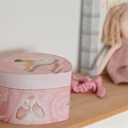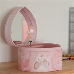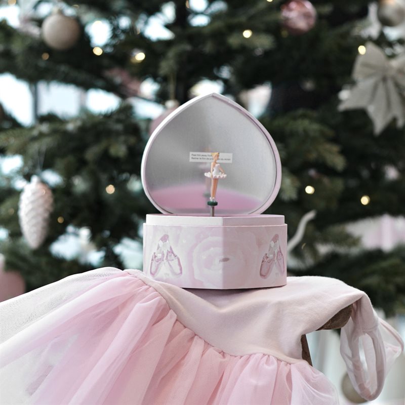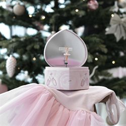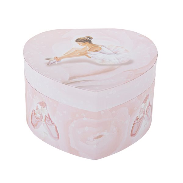 Rosa smykkeskrin i hjerteform med balletdanser