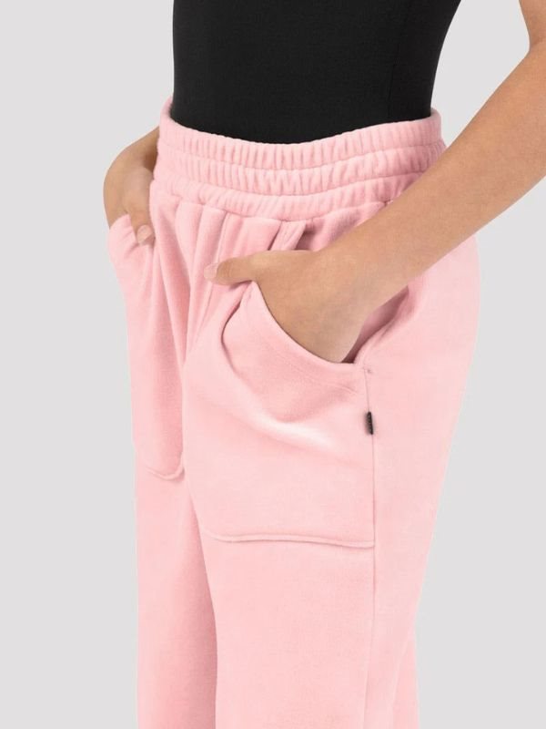 Bukserne er blød velour, der sikrer fuld bevægelsesfrihed, perfekt til ballettræning eller afslapning. De har en høj, elastisk talje med snøre, fuldlange ben med elastik ved anklerne, og praktiske lommer. Ideelle til at bære over balletdragten for ekstra varme. Materiale: 95% Polyester, 5% Elastan. Matcher perfekt med en bluse i samme kvalitet.