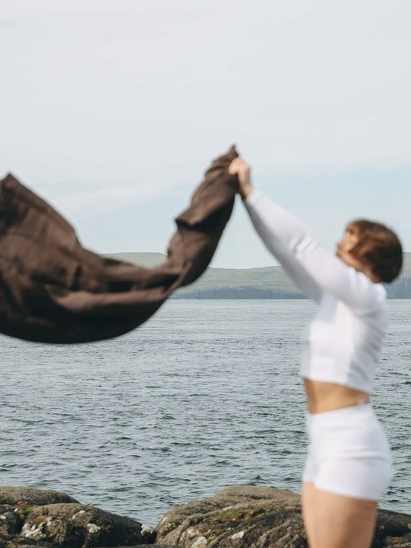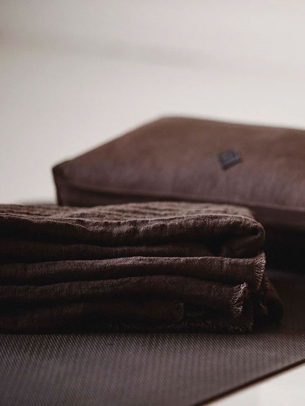 Det mørkebrune yogasjal fra Simple Days er et alsidigt tæppe eller sjal, der er perfekt til mange formål. Lavet af naturlige materialer, en blanding af bomuld og hør, er dette yogasjal blødt og lækkert at have på. Det er ideelt til hyggestunder, til at lune sig med eller til før og efter yoga eller meditation. Sjalet er gennemfarvet og har små frynser langs kanten.