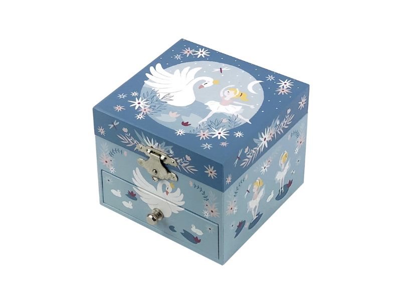 En klassisk og poetisk spilledåse, der skaber ro og glæde på børneværelset. Når du drejer på håndsvinget, bevæger figuren sig smukt til tonerne af Svanesøen.
