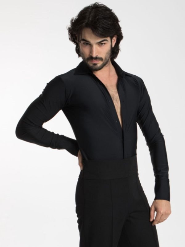 Sort danseskjorte til dreng/herrer fra Intermezzo er designet med fokus på komfort og funktionalitet, perfekt til enhver danseform. Skjorten har praktiske knapper og en klassisk krave, der sikrer et stilfuldt look. Takket være det unikke design kravler den ikke op af bukserne under dans, plus den har praktisk gylp. 80% polyamid og 20% elastan. Fremragende stretch og bevægelsesfrihed. Ideel til både træning og dansekonkurrencer.