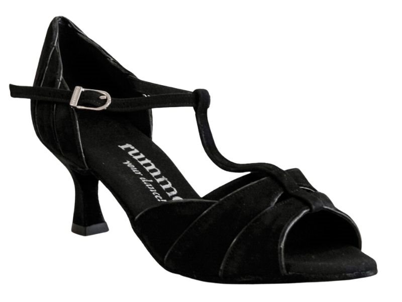 Rummos sorte dansesko i bred model, fremstillet i nubuck ruskind i Portugal. Disse sko er designet med en blød og behagelig pasform, hvilket gør dem ideelle til en bred vifte af dansestile. De er perfekte for dansere med bredere fødder, da tåplatformen er ekstra bred sammenlignet med traditionelle dansesko.