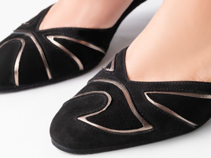 Sort dansesko med guld og lukket snude Werner Kern