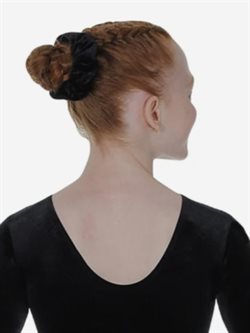 Sort velour hår elastik som er perfekt til gymnastik og dans. Den bløde tekstur og holdbare elastik holder håret på plads.